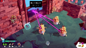 工場の中盤に行くとレーザーロボ3体に集中砲火を喰らっているカエルが見つかる