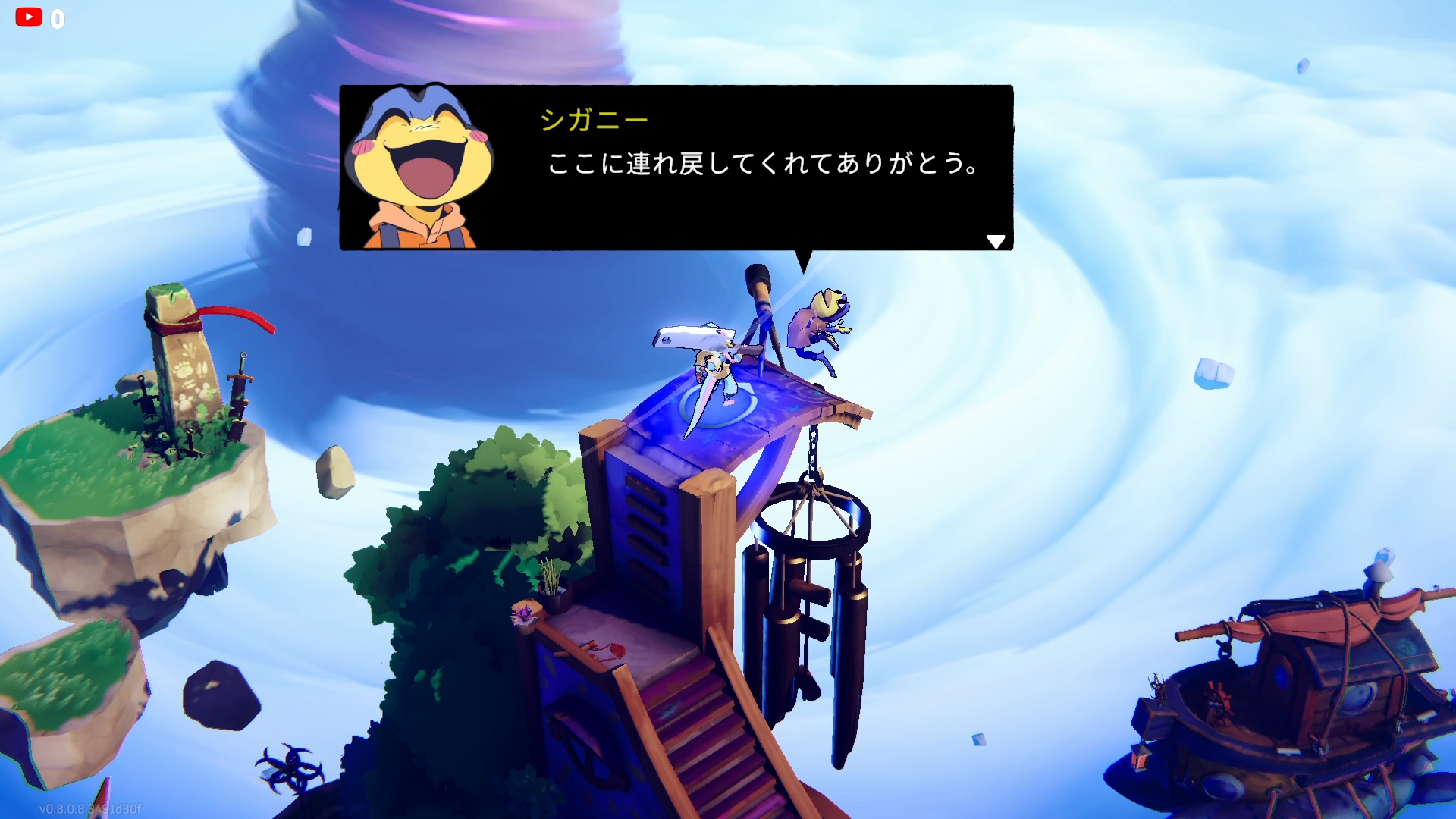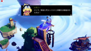 プレイヤーは前回のクエストでもらっていたジンメイキュウギョを使ってアークに連れて帰ることになる - 拠点に戻ってエペリンたちと会話